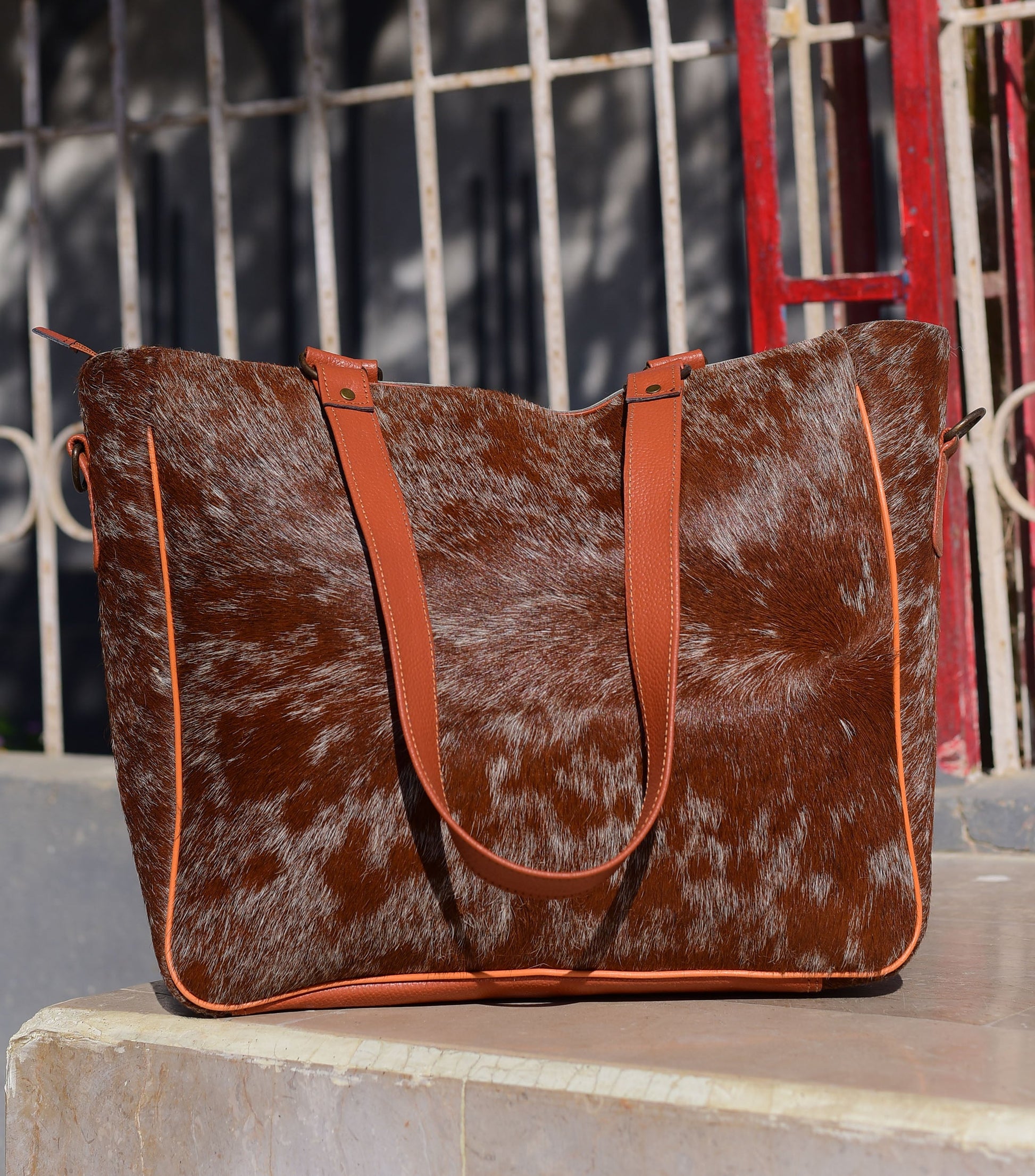 Embark on your next journey with the epitome of style and durability; our handcrafted Genuine Cowhide Leather Travel Duffle is the quintessential companion for any adventurer or frequent flyer. This luxurious cowhide duffel bag, with its distinctive hair-on animal print, is a statement piece that combines functionality with an eye-catching design. It's not just a bag; it's a testament to your unique taste and love for quality craftsmanship.